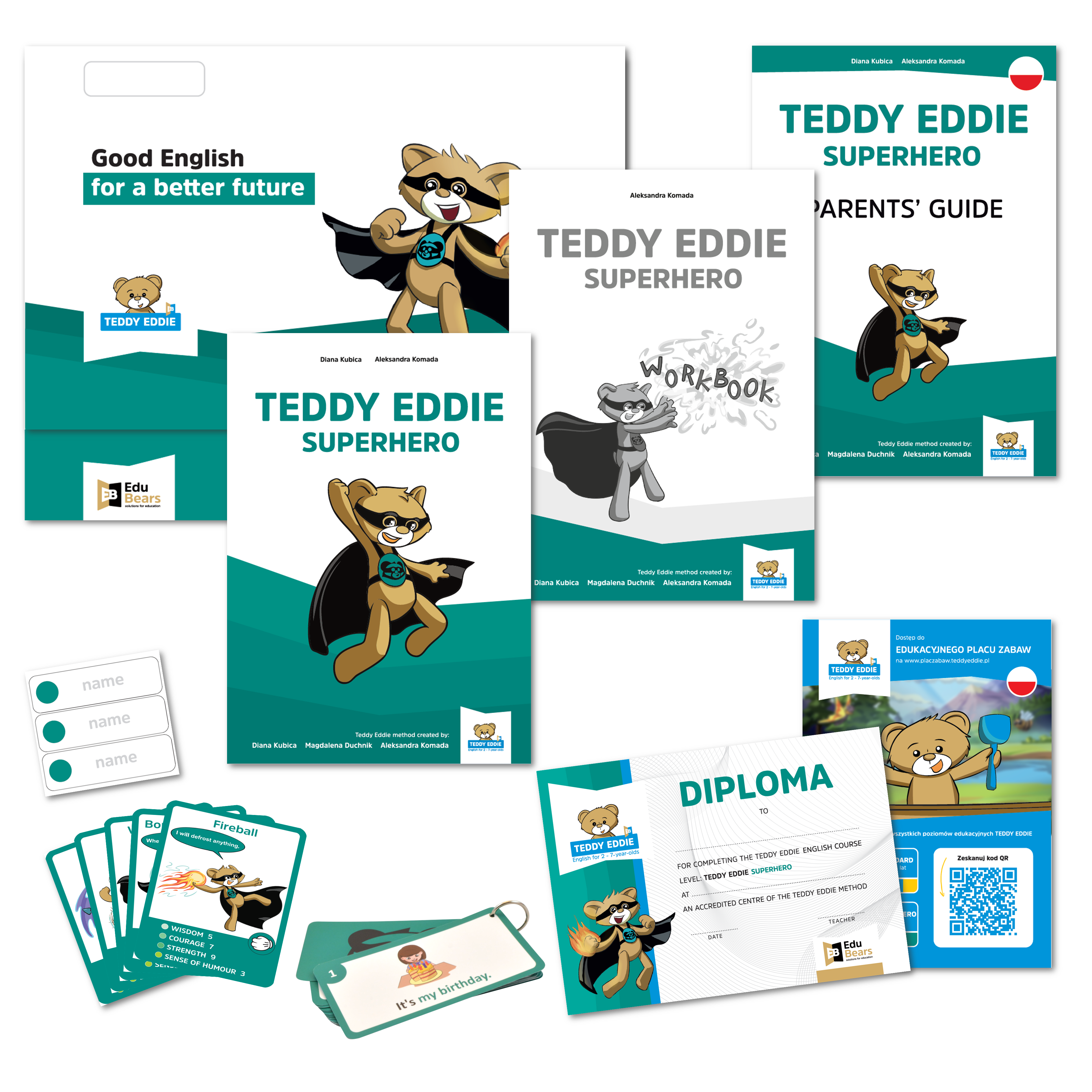 Poziom Teddy Eddie Superhero to kurs angielskiego dla 7-latków rozpoczynających edukację szkolną. Kurs Teddy Eddie Superhero jest przeznaczony zarówno dla pierwszoklasistów, którzy uczyli się wcześniej metodą Teddy Eddie, jak i tych, którzy jej nie znają. Nauka angielskiego dla